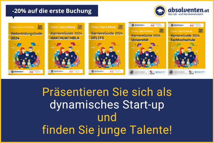 Sie erhalten bei Erstbuchung 20% Rabatt auf alle Leistungen von absolventen.at (Für Start-ups & KMUs bis 3 Jahre).