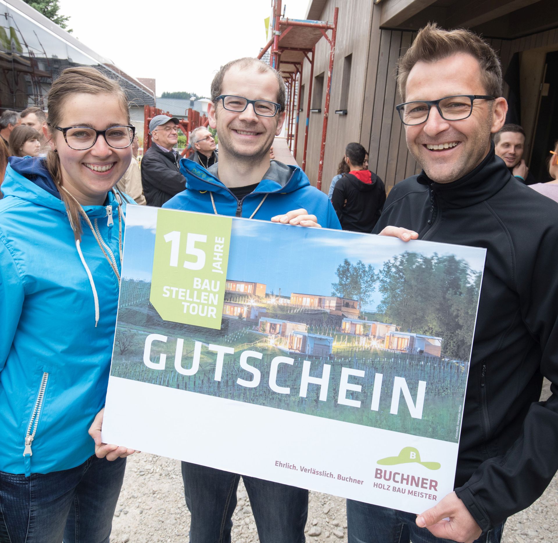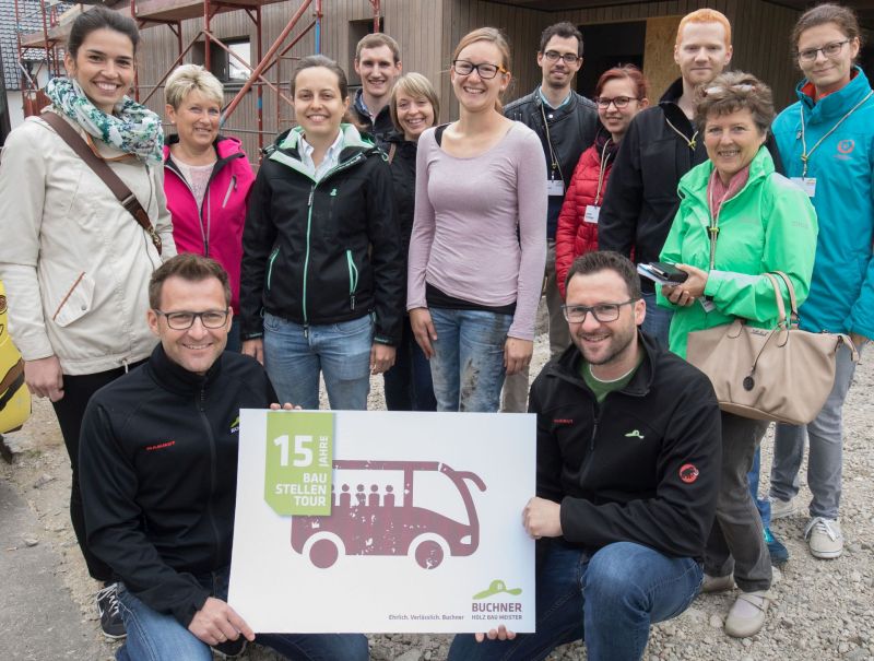 Insgesamt wurden in den vergangenen 15 Jahren fast 30 Baustellentouren durchgeführt, bei denen mehr als 900 Teilnehmer bei 90 Baufamilien zu Besuch waren. „Die Planung und Vorbereitung eines Neubaus am Papier und am Computer ist die eine Seite. Genauso wichtig und für die Bau-Interessenten hilfreich ist das Erlebnis Holzbau direkt vor Ort. Hier kann man sehen, riechen und angreifen, wie wunderbar natürlich dieser Baustoff ist“, fasst Vertriebsleiter Christian Leski die Erfahrung von 15 Jahre Buchner-Baustellentouren zusammen.
