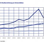 Im Jahr 2013/14 haben weniger Studierende ein Wirtschaftsstudium an einer Universität abgeschlossen. Während es im Jahr 2012/13 noch 5.261 Wirtschafts-AbsolventInnen gab, sind 2013/14 nur mehr 4.509 zu verzeichnen. An Fachhochschulen ist die Zahl der Betriebswirte jedoch gestiegen. An den Universitäten dürfte sie in den kommenden Jahren weiter sinken – so waren im Semester 2014/15 52.975 Studierende in einem sozial- oder wirtschaftswissenschaftliches Fach inskribiert. Im Semester 2007/2008 waren es noch 67.605.