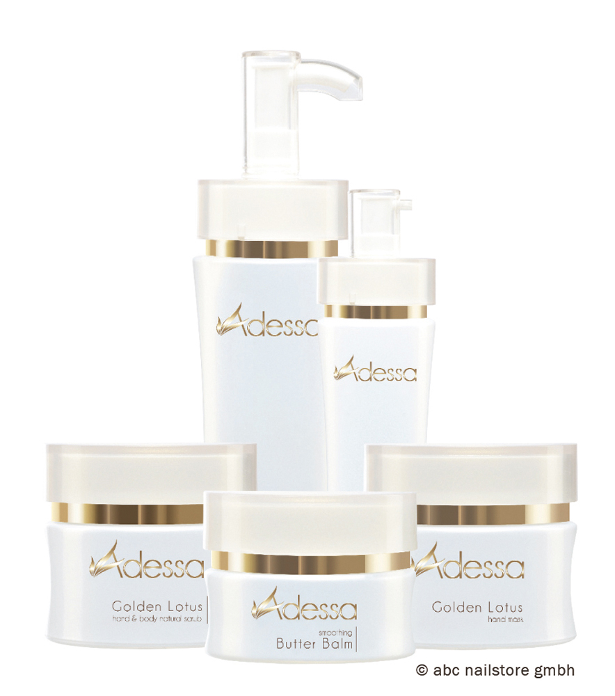 „Kälte und Wind aber auch die Arbeit im Haushalt oder Sonneneinstrahlung trocknen die Haut der Hände besonders aus. Adessa Golden Lotus ist eine erstklassige Handpflegeserie für jeden Hauttyp, die die Jugendlichkeit der Hände bewahrt bzw. ihnen ihr frisches Aussehen zurückgibt“, so die Nagel- und Kosmetikexpertin Andrea Wizany, abc nailstore international Landesvertretung Austria.