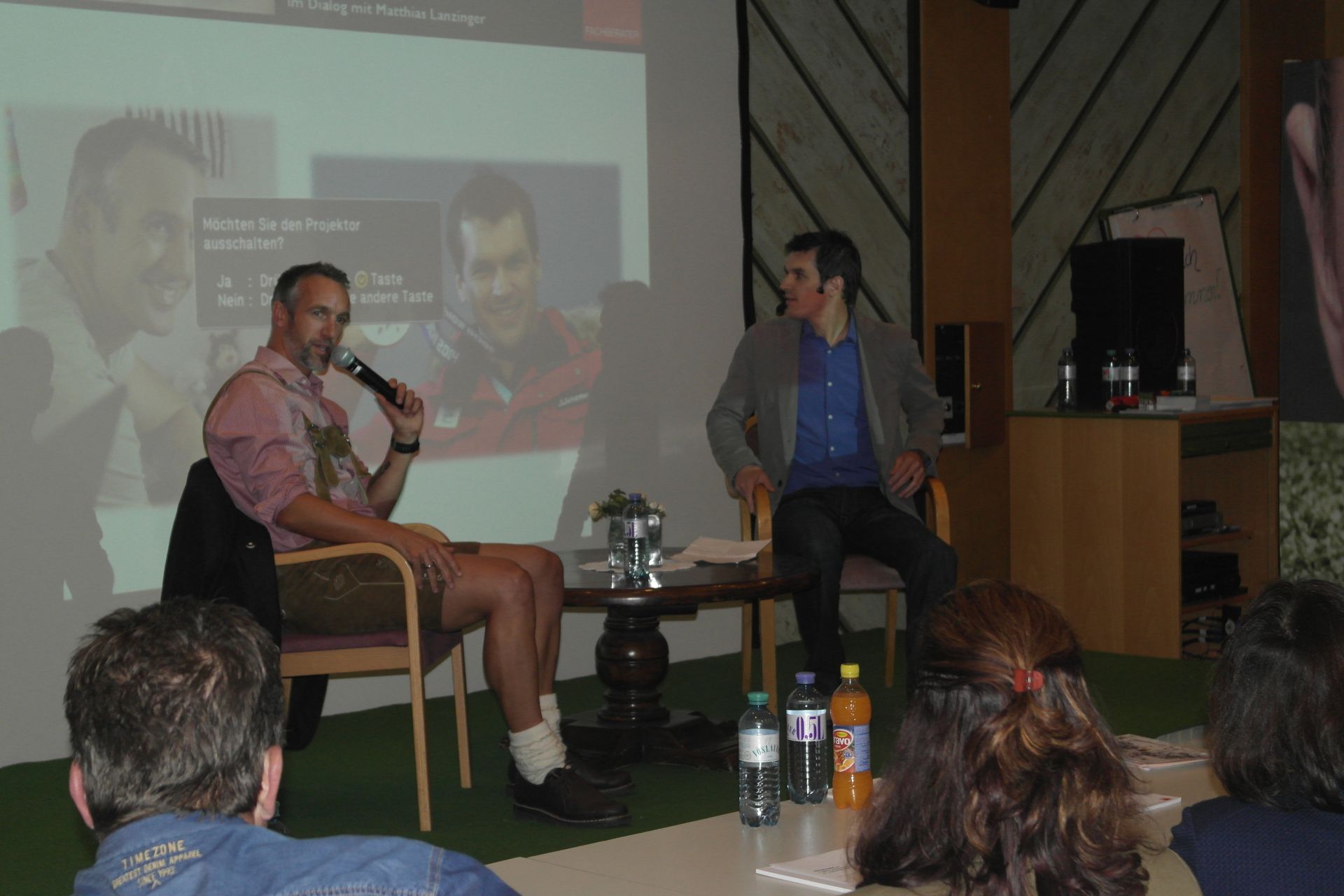 Nach dem sensationellen Vortrag von Stefan Verra folgte das nächsteHighlight – der Ehrengast Matthias Lanzinger, der in einem teilweise sehr emotionalen Dialog mit Christoph Sumann sein Leben vor und nach dem tragischen Unfall beschrieb.