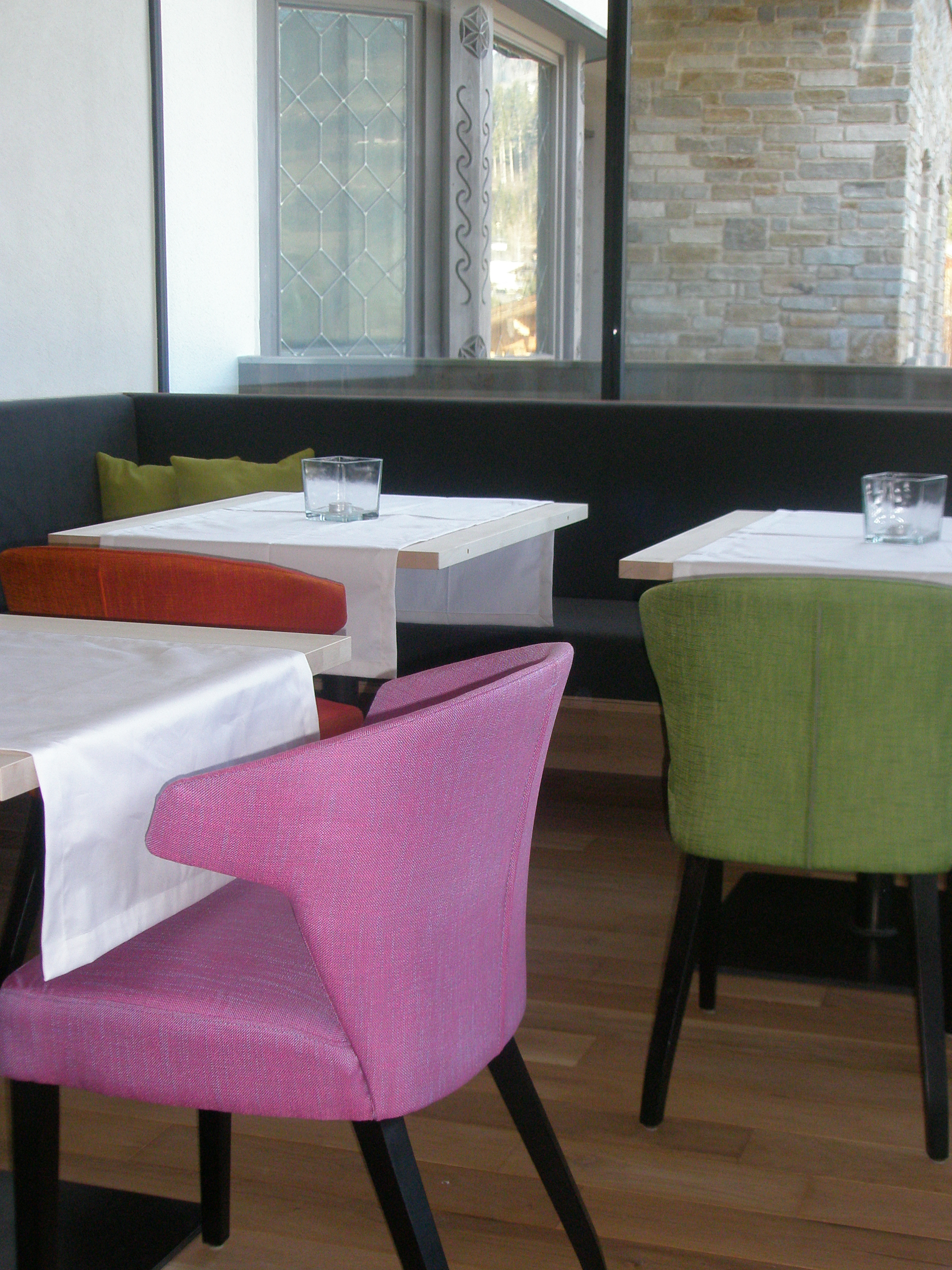 Das Panoramarestaurant und die Veranda sind ganz Pöschl Stil gestaltet worden – natürlich auch mit einem Hauch Persönlichkeit der Familie Wetscher.