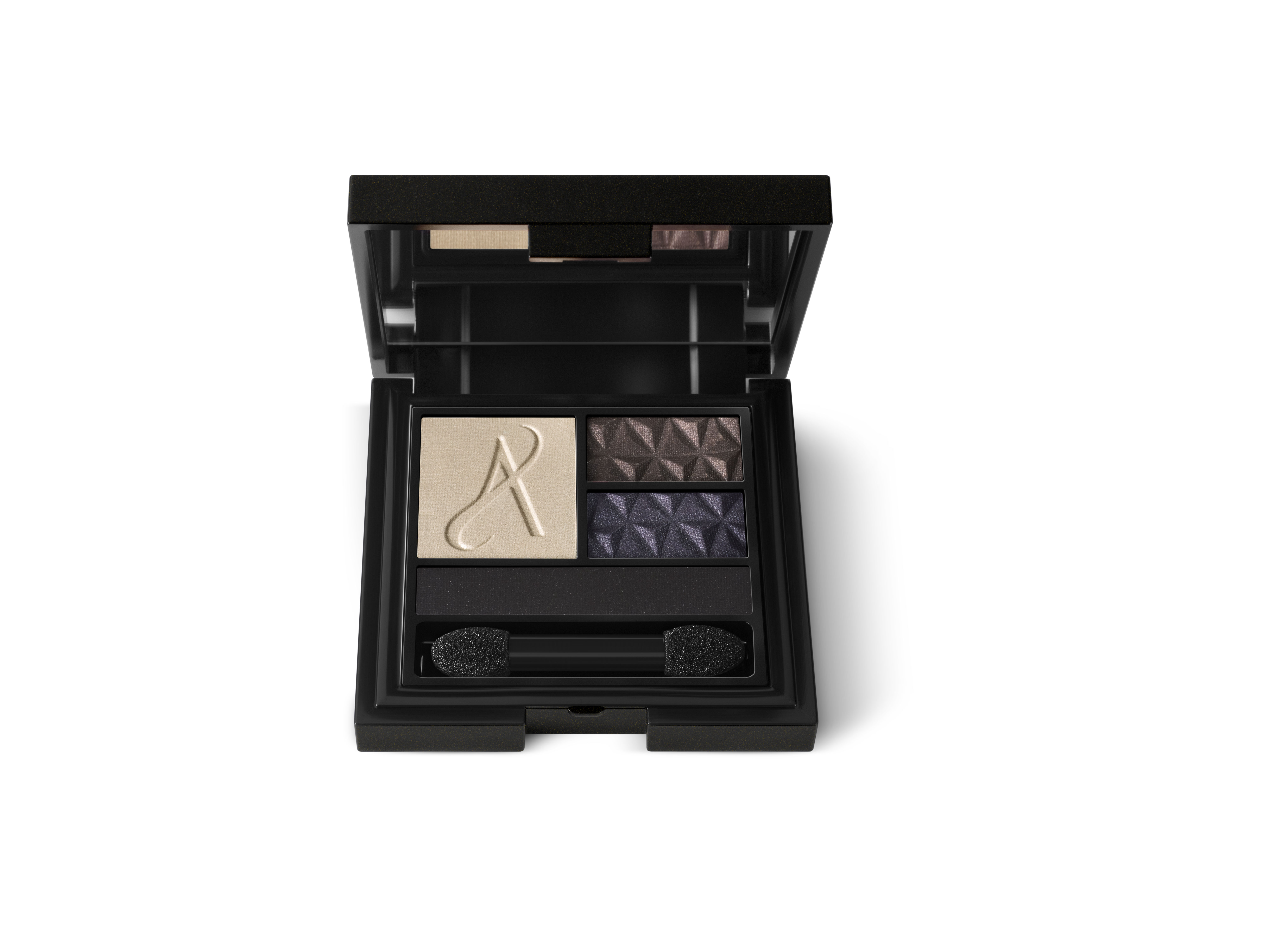 Das Galaxy Lidschatten-Quartett kombiniert vier seidige Puder mit einem Satin-Finish. Die Empfehlung für einen himmlischen Look: Verteilen Sie den schimmernden beigen Highlighter über das gesamte Lid, folgen Sie mit dem melierten, tiefbraunen oder dem satt violetten Lidschatten und akzentuieren Sie den Look mit dem tiefschwarzen Liner.