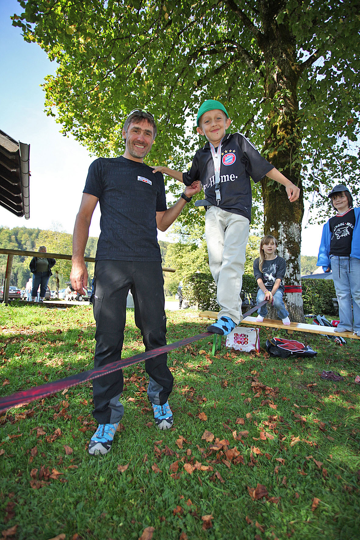 Ausgerüstet mit Seven Summits Rucksäcken, begann der gemeinsame Tag mit einer Wanderung den wunderschönen Almsee entlang. Extremsportler Wolfgang Fasching, der selbst bereits die höchsten Berge aller Kontinente bestiegen hat, erzählte dabei spannende Bergsteigergeschichten und erklärte, worauf es beim Bergsteigen ankommt. Wichtige Eigenschaften wie Kondition, Orientierung und Sicherheit, aber auch Mut und Willensstärke wurden anhand verschiedener Spiele wie Balancieren auf Slacklines ausprobiert. Bei einem abschließenden Grillfest im Gerhard-Possart-Jugendhaus in Grünau konnte der Tag mit Spiel, Spaß und einer Verlosung von Eybl-Sportgeräten ausklingen.