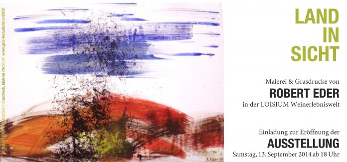 Am 13. September wird die Einzelausstellung „Land in Sicht“von Robert Eder in der Weinerlebniswelt Loisium eröffnet. Eder meldet sich nachlängerer Pause wieder ins Kunstgeschehen zurück. Die gezeigten Werkserienassoziieren in Malerei und in einer speziellen Technik der Monotypie, demGrasdruck, landschaftliche Gegebenheiten des Wein- und Waldviertels und spürendem Licht in der Natur nach.