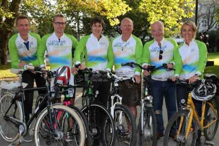 VollerTatendrang tritt das Team von umweltservice salzburg zusammen mit den Träger-Vertretern kräftigin die Pedale. Angeführt von Geschäftsführerin Sabine Wolfsgruber radelt die Gruppemotiviert seinem Ziel entgegen: die Bäckerei Rösslhuber in Bergheim, einVorbild und Best-Practice-Betrieb für Energieeffizienz für alle Bäckereien.