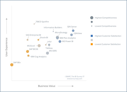 Der BI Survey 17 wird vom Business Application Research Center (BARC) durchgeführt und ist die weltweit größte unabhängige Umfrage unter BI-Anwendern. Qlik nimmt seit neun Jahren daran teil und hat eine hohe Beteiligungsrate seiner Kunden. Qlik-Kunden schätzen die flexiblen Self-Service-Möglichkeiten in einer einzigen Plattform und die verschiedenen BI-Nutzungsoptionen, die eine konsistente, daten-basierte Entscheidungsfindung erleichtern.