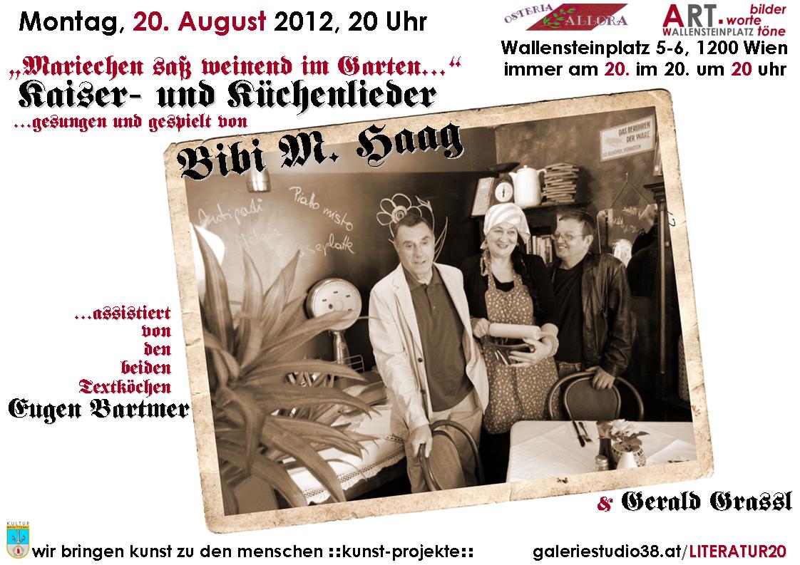 "Mariechen saß weinend im Garten" - Kaiser- und Küchenlieder…gesungen und gespielt von Bibi M. HAAG …assistiert von den beiden Textköchen Eugen BARTMER und Gerald GRASSL PLATZRESERVIERUNG wird empfohlen. Pay as you can.