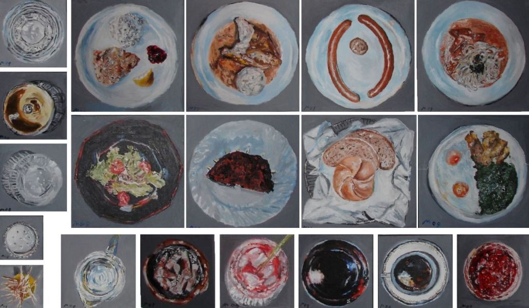 Die Lust, aber auch die Unlust, die mit dem Essen verbunden ist, die Erotik, der Akt der Einverleibung, das Fressen und Gefressen-Werden im Dasein, die Vergänglichkeit sind wesentliche Aspekte der künstlerischen Arbeiten.