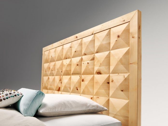 Wahrhaft erhaben wirkt das neue Zirbenbett vom Massivholzspezialisten Anrei Reisinger aus Pabneukirchen, Österreich. Big Ann beeindruckt durch ein außergewöhnliches Kopfhaupt mit pyramidenförmigen Reliefs, ein handwerkliches Meisterstück von stattlicher Größe.