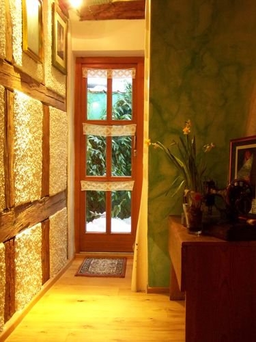 Neben der perfekten Lage im Herzen Laufs, begeistert das Gästehaus Auszeit mit der besonderen Einrichtung und dem enormen Platzangebot. Auf drei Stockwerke und insgesamt 65 qm verteilt, bietet das Gästehaus Schlafgelegenheit für vier Personen in zwei Schlafzimmern. Ein Badezimmer mit Badwanne, eine separate Gästetoilette und eine große Wohnküche runden das Angebot ab. Die Küche ist komplett ausgestattet, selbst für Gewürze ist gesorgt und der Kaffee ist im Angebot inklusive. Gemütlichen Kochabenden im Gästehaus Auszeit steht also nichts im Weg. Die Inhaberin Eva-Maria Schneider-Menzel hat das gesamte Gästehaus in einer Mischung aus Tradition und Moderne eingerichtet. So finden sich zum Beispiel neben dem Fachwerk im Inneren des Hauses auch moderne Gemälde. Schneider-Menzel legt viel Wert auf Originalität, Gemütlichkeit und Sauberkeit im Gästehaus Auszeit. Das besondere Design setzt sich auch im uneinsehbaren kleinen Innenhof des Gästehauses fort, der vor allem im Frühling und Sommer hervorragend zum Entspannen genutzt werden kann.