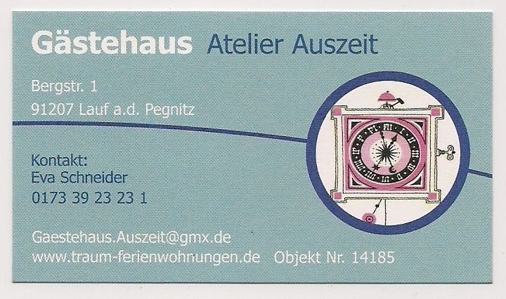 Das Gästehaus Auszeit in Lauf a.d. Pegnitz/Bayern ist besonders für Urlauber aus Österreich ein empfehlenswertes Ausflugsziel, da die Anreise z.B. aus Linz nur 3 Stunden beträgt. Ein vielfältiges Freizeit- und Kulturangebot in der Umgebung und die geschmackvolle und besondere Ausstattung des Gästehauses zu einem unschlagbaren Preis laden Sie ein.