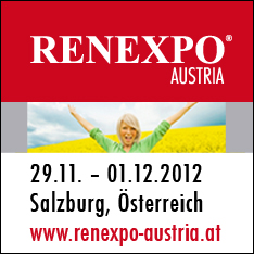 Auf der internationalen Kongressmesse RENEXPO® Austria kommen vom 29.11. bis 01.12.2012 in Salzburg 1.000 Kongressteilnehmer, 4.000 Fachbesucher und 150 Aussteller zusammen, um an der Umsetzung der Österreichischen Energiestrategie mitzuwirken und auf den drei internationalen Branchenforen zu den Themen Wasserkraft, Gebäudeintegrierte Photovoltaik und Energie Plus Gebäude Kontakte zu knüpfen, Wissen zu vermitteln und Entscheidungen vorzubereiten. Weitere Informationen zur Messe unter www.renexpo-austria.at