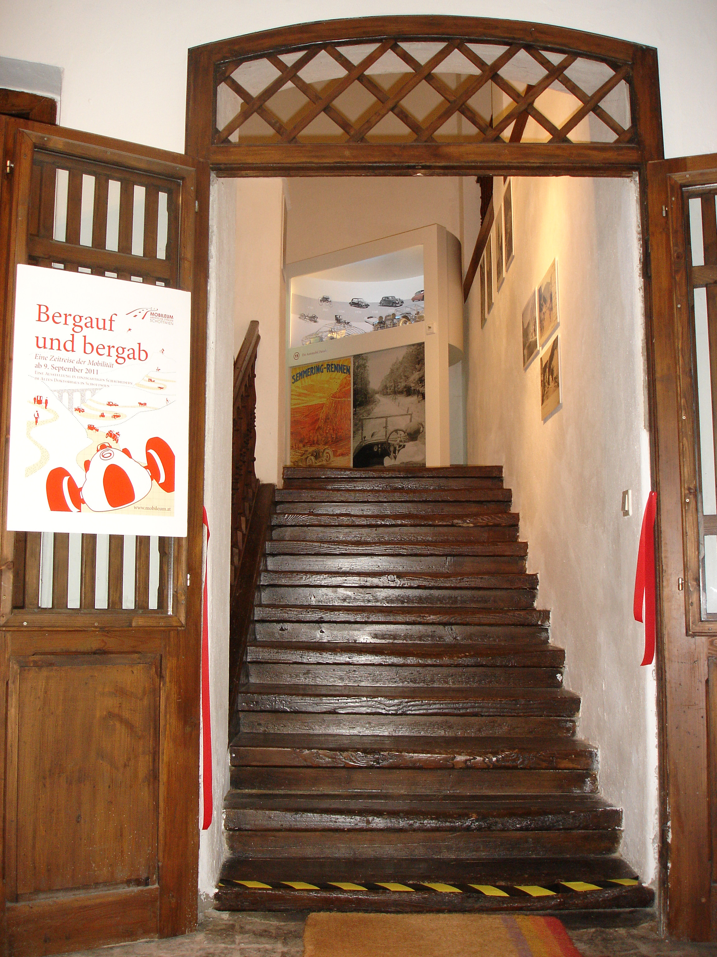 Seit der Eröffnung des MOBILEUM im September 2011 kann man sich nun auf eine Zeitreise der Mobilität unter dem Titel: "Bergauf und bergab" begeben. Schon im frühen Mittelalter bestand ein Saumpfad über den Semmering, das Reisen war jedoch eine beschwerliche Angelegenheit und von Wien nach Venedig waren zwölf Mautgebühren zu entrichten, was die Handelswaren erheblich verteuerte. Der Bau der "Carolusstrasse" durch Kaiser Karl VI. imJahre 1728 wurde der Überlieferung nach in nur 48 Tagen fertiggestellt.