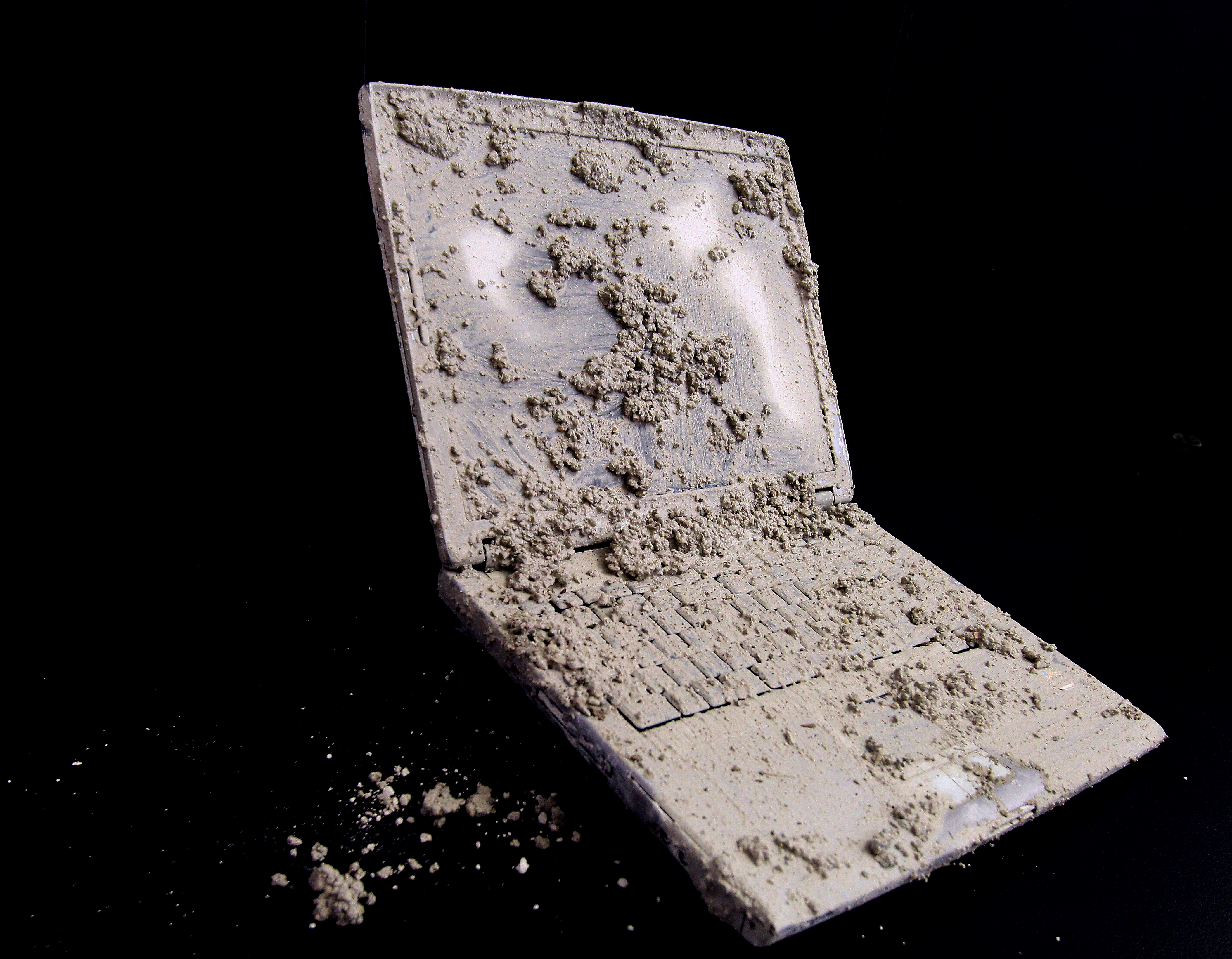 Eine Familie erweiterte im Sommer ihr Einfamilienhaus. Dazu wurde eine Bodenplatte betoniert. Neugierig beobachteten vom darüber liegenden Balkon die Familienmitglieder das Geschehen. Die kleine Tochter des Hauses hatte den Laptop auf der Einfriedungsmauer abgestellt. Gerade als der Beton auf die Bewehrung gepumpt wurde, fiel dem Mädchen der Laptop in die zähflüssige Masse. Das Gerät konnte noch herausgefischt werden, jedoch mussten unsere Techniker einerseits vorsichtig, andererseits mit Gewalt den mittlerweile gehärteten Beton entfernen, um an die Festplatte für die Datenrettung heranzukommen.