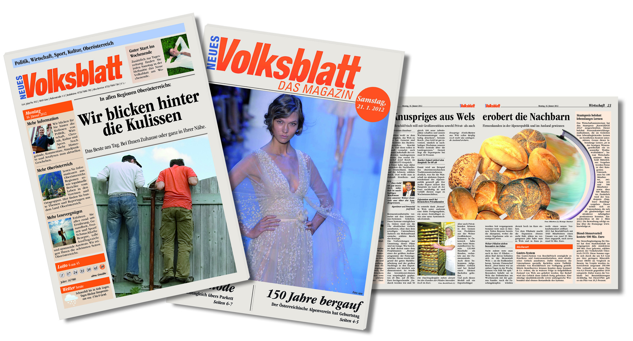 Im Zuge der Neugestaltung der Tageszeitung wurde auch die Wochenendbeilage „Neues Volksblatt – Das Magazin“ überarbeitet. Große Bilder, viele „weiße“ Flächen und die neue Anordnung der einzelnen Textelemente verbessern die Lesbarkeit und verleihen der Wochenendbeilage Magazincharakter.