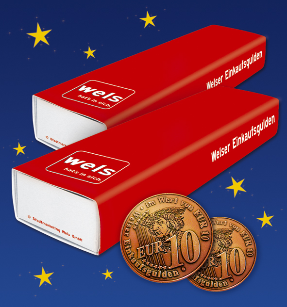 Jeder bekommt gerne Geschenke. Das richtige Geschenk zu machen ist aber gar nicht so leicht und deshalb gibt es den Welser Einkaufsgulden! Denn der Welser Einkaufsgulden passt immer! Ganz egal ob Weihnachten, Geburtstag, Namenstag, Hochzeitstag oder auch einfach nur so, mit dem Welser Einkaufsgulden hat man immer das richtige Geschenk ausgewählt, denn im Grunde kann sich der Beschenkte sein Präsent selbst aussuchen! Und bei der bunten Bandbreite an Partnerbetrieben findet sicher jeder das Geschenk, das so richtig Freude macht. Schließlich ist der Welser Einkaufsgulden in mehr als 320 Welser Betrieben einlösbar! Seine Gültigkeit reicht von den Partnern in den Welser Shoppingcentern über die Innenstadt bis hin zu Geschäften am Stadtrand und umfasst von A bis Z wirklich alle Branchen. Wer gerade wunschlos glücklich ist, kann sich mit dem Welser Einkaufsgulden aber auch einfach mal nur verwöhnen lassen. Zahlreiche Gastronomiebetriebe akzeptieren die Einkaufsgulden im Wert von zehn Euro ganz selbstverständlich als Zahlungsmittel für ihre kulinarischen Köstlichkeiten – und was gibt es Feineres als eine schöne Essenseinladung?