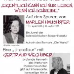 Am 20. März ist der Leseabend bei bilder.worte.töne der österreichischen Schriftstellerin Marlen Haushofer gewidmet, anlässlich ihres Todestages am 21. März 1970.