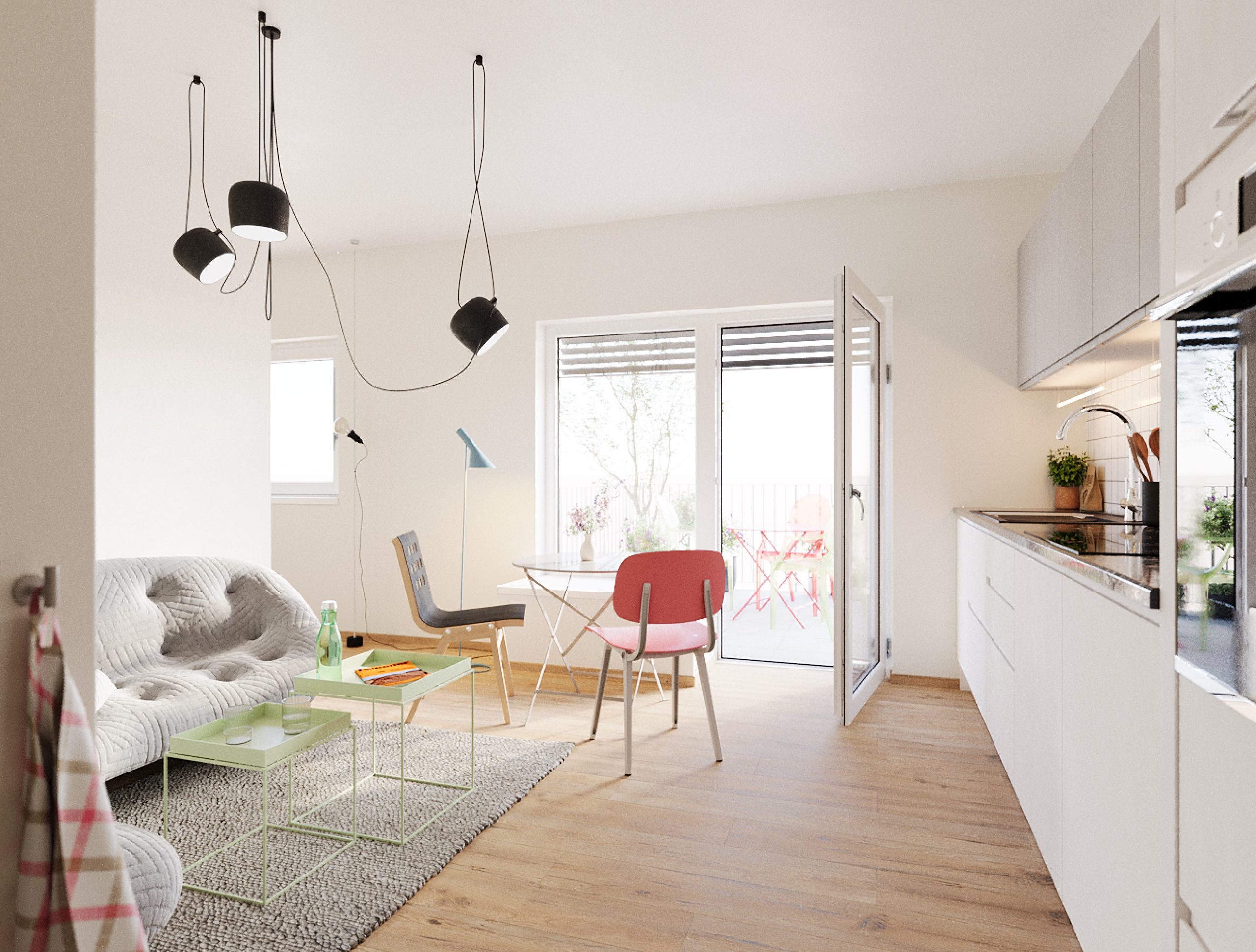 Zwischen ein und vier Zimmern mit 32 bis 91 Quadratmetern groß sind die 44 zum Verkauf stehenden Wohnungen. Und damit für Alleinstehende ebenso gut geeignet wie für junge Familien. Durchdachte Grundrisse ermöglichen eine optimale Raumaufteilung und damit verbunden flexible Möblierungsmöglichkeiten. Abgerundet wird das lebendige Zusammenspiel aus ressourcenschonender Errichtung und hochwertigem Design durch neueste smarte Digitaltechnik. „Wir rücken das Thema Technologie und Digitalisierung bewusst in den Vordergrund“, sagt Klement. Ein Smart-Home-System ermöglicht den Bewohnern etwa, Haustüren über das Smartphone aufzuperren oder Informationen zum Gebäude von unterwegs abzurufen.