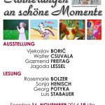 Der Verein ::kunst-projekte:: beteiligt sich zum 7. Malfächerübergreifend „in Wort und Bild“ am von Traute Molik-Riemer initiierten Tagebuchtag. Die am Projekt Beteiligten (Autorinnen und Autoren, bildende Künstlerinnen und Künstler) setzen sich diesmal mit „schönen Momenten“ in Texten und Bildern auseinander. Dabei fließt auch das Jahresthema 2014 PARADIESE ein. An den Leseabenden wird jeweils ein Tagebuch der Firma Paperblanks verlost.