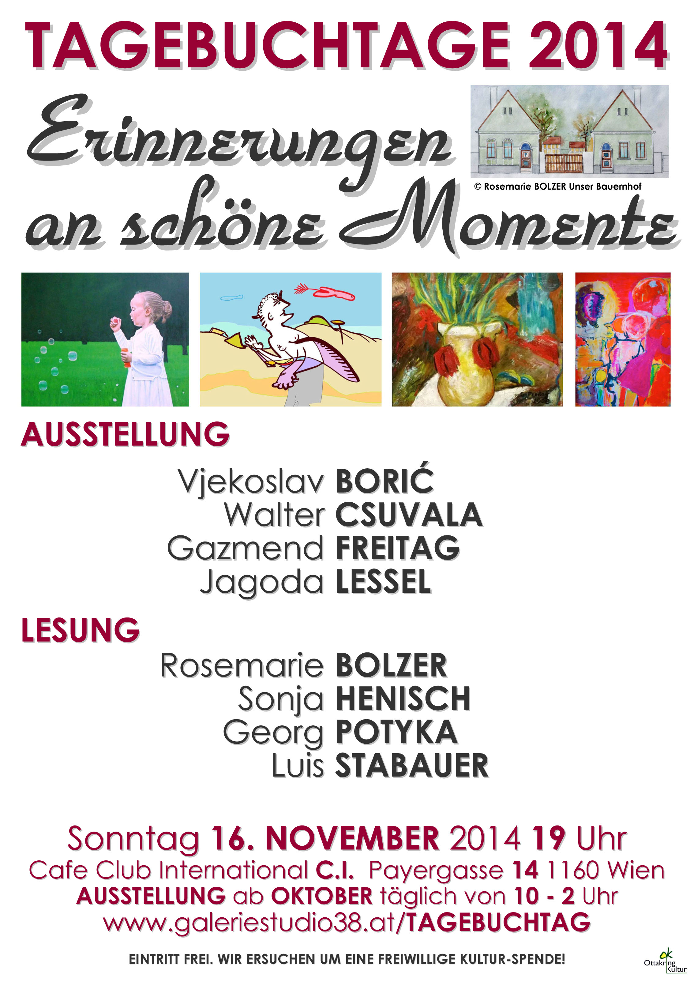 kunst-projekte TAGEBUCHTAG(e) Sonntag, 16. November, 19 Uhr Cafe Club International C.I. Payergasse 14, 1160 Wien. Ausstellung ab Oktober