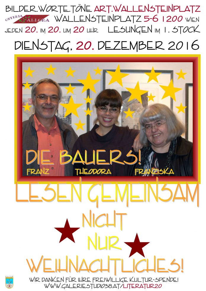 Dienstag, 20. Dezember 2016, 20 Uhr ART.WALLENSTEINPLATZ Lesung im 1. Stock Osteria Allora Wallensteinplatz 5, 1200 Wien