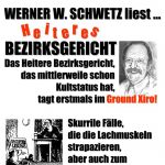 Am 2. April „tagt“ bei Literatur im Ground Xiro das „Heitere Bezirksgericht“. Skurrile Fälle, die die Lachmuskeln strapazieren, aber auch zum Nachdenken anregen, sind Inhalt des Leseabends von Werner W.SCHWETZ.