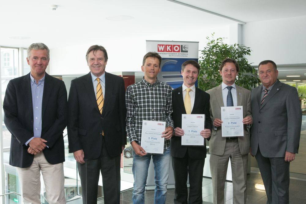 Unter allen Trägern und Trägerinnen des Gütesiegels des Fachverbands Finanzdienstleister wurden in der Publikumswahl 2014 die besten Finanzberater ermittelt: Nach Auswertung der 491 Rückmeldungen stehen nun die Sieger fest: Martin Singer, in der Steiermark und Kärnten tätiger Gewerblicher Vermögensberater, gewinnt vor Christoph Alexander Köpf aus Wien und Andreas Petschar aus Kärnten.Ihnen allen gemeinsam ist, dass sie von ihren Kunden exzellent bewertet wurden,ausschlaggebend für den Sieg waren die unterschiedlichen zusätzlichen Bemerkungen in den Rückmeldungen.