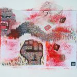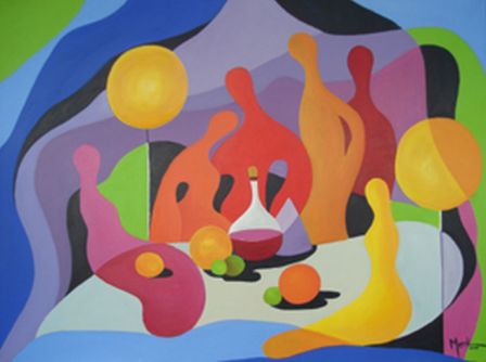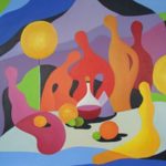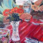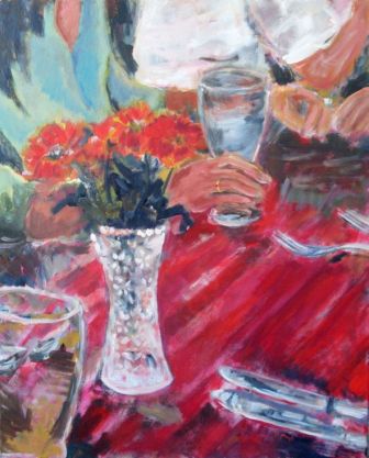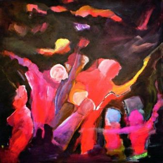 Jagoda LESSEL verwendet abstrakte Formen und die Farbe Rot, um Beziehungen, ohne sie zu werten,darzustellen. Vielseitige Lebensfreude, Liebe, Kampf, neue Taten, aber auch ein Anfang ohne Ende sind Motive ihres Bildes „Das Fest“.
