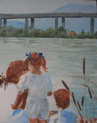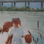 Elisabeth SCHWANDTER illustriert in „Badevergnügen“und „Unterwegs Draublick“ Familienmitglieder beim Sonntagsausflug am Wasser. In beiden Werken sind nur die Rückenansichten der Figuren (Mutter und Kinder) zusehen. Der Vater ist nicht im Bild, dennoch deutet vieles darauf hin, dass er doch anwesend ist – als stiller Beobachter oder als Fotograf, der die Szene festhält.