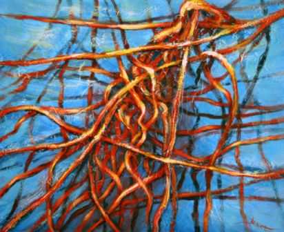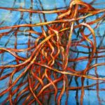Elisabeth BUNKA-PEKLAR untersucht in ihren beiden abstrakten Bildern „Seilschaft“ und „womennetwork“ das Beziehungsgeflecht. Im übertragenen Sinn wird hierauf eine mehr oder weniger große Gruppe von einander verbundenen Personen verwiesen, aus denen sich eine Familie zusammensetzt.