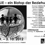 Künstlerische Positionen, die den Wandel des Begriffs FAMILIE und seine vielfältigen Formen ausloten. Kunstraum Ewigkeitsgasse Thelemangasse 6, 1170 Wien - VERNISSAGE und LESUNG: Montag, 17. SEPTEMBER 2012, 19 Uhr - FINISSAGE: Mittwoch, 3. OKTOBER 2012, 19 Uhr - Öffnungszeiten: Di-Fr 16-19 Uhr und auf Anfrage.