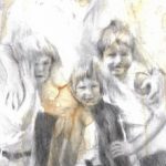 Marie-Luise STUHR hat in ihrem sechsteiligen Bild „Vielköpfige Familie“ jedes Familienmitglied porträtiert und damit auf individuelle Art und Weise gewürdigt -als Beziehungsgeflecht einerseits verwandter, aber vor allem sich zusammengehörig fühlender Personen unterschiedlicher Geschlechter und Generationen. Wie in einem Stammbaum soll sich dieses puzzleartige Bildnis im Laufe der Zeit erweitern und verändern dürfen, wenn neue Menschen zur Familie in Beziehung treten.