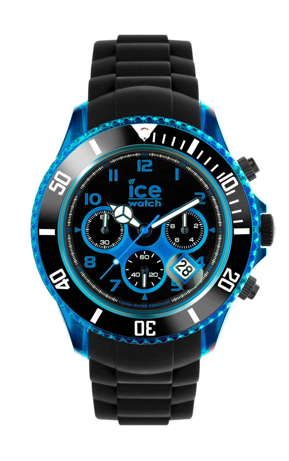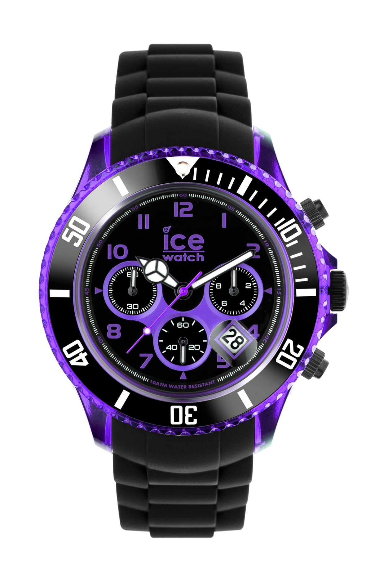 Die neue Ice-Chrono Electrik Kollektion von Ice-Wach Brand kombiniert Elemente der bekannten Ice-Chrono Uhr mit neuen spannenden Elementen. Leuchtende Farben akzentuieren das Uhrengehäuse sowie das Ziffernblatt der neuen Uhrenkollektion von Ice-Watch Brand. Das matte schwarze Armband kontrastiert dabei mit den leuchtenden Designelementen und verleiht der Uhr einen stylischen, edlen Look. Die neue Ice-Chrono Electrik ist in den vier Farbkombinationen Black-Blue, Black-Turquoise, Black-Orange und Black-Purple erhältlich.