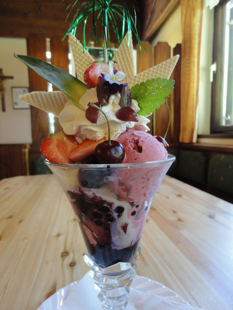 Angeboten werden neben der traditionellen Küche auch typische steirische Schmankerl sowie Pfandlgerichte, fangfrische Forellen und hausgemachte Mehlspeisen. Das umfangreiche Angebot der Eiskreationen sorgt auch an heißen Sommertage für besonderen Genuss.