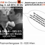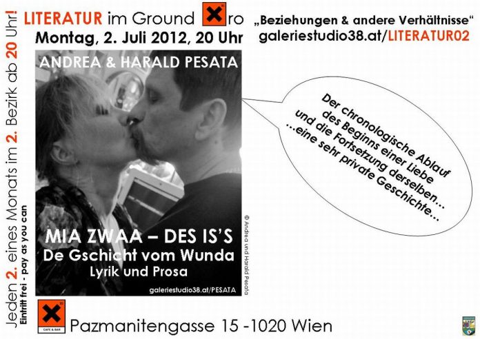 „Der Titel beinhaltet praktischerweise einen Titel von Andreas Gedichten und einen Titel meiner Geschichten, die wir zum Thema lesen möchten. Die Lesung wird sozusagen der chronologischer Ablauf des Beginns einer Liebe und die Fortsetzung derselben sein. Eigentlich eine sehr private Geschichte, die wir das erste Mal öffentlich lesen werden.“ So lautet das Statement von Andrea und Harald Pesata zu ihrer Lesung „MIA ZWAA– DES IS’S“.