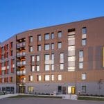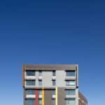Das 6-stöckige Wohnprojekt mit 7,500 m2 Gesamtfläche wurde komplett in Holzriegelbausweise mit Werkstoffen aus der näheren Gegend erstellt, wie auch viele Produkte und Materialen regional bezogen wurden.