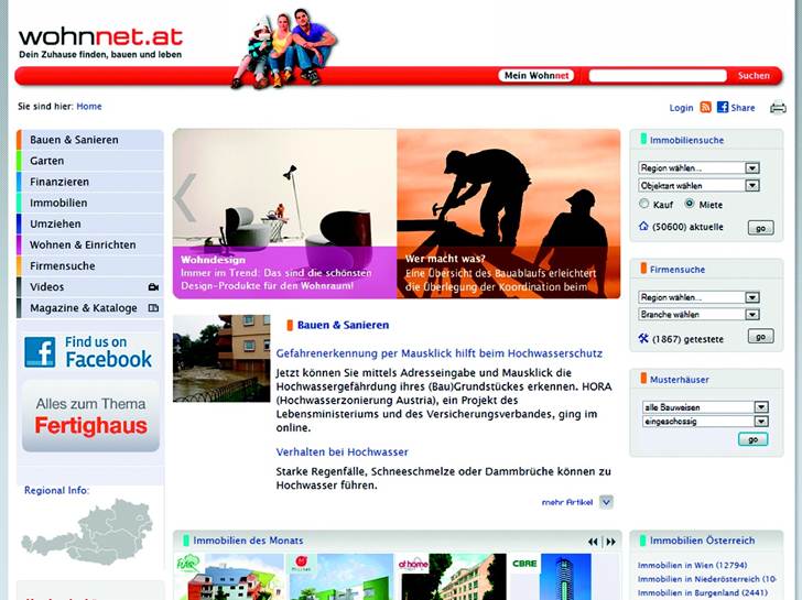 Die Mediengruppe wohnnet.at ist der führende österreichische Fachverlag in den Themenbereichen Bauen und Wohnen. Das Medienhaus betreibt nicht nur die sehr erfolgreiche Immobilien- und Wohnplattform wohnnet.at, die auf knapp 320.000 Unique Clients und neun Millionen Page Impressions (ÖWA Jahresschnitt 2012) verweisen kann. Sie verlegt zusätzlich acht Print-Titel, darunter Erfolgsmedien wie „Bauperfekt „ Gut Saniert“ „Architektur im Mittelpunkt“, „4Wände“ und „Österreichs Bauhandbuch für Architekten“.