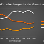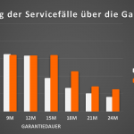 Im ersten Quartal der Garantiezeit wurden etwa 13 Prozent der kostenpflichtigen Reparaturen registriert. Diese Zahl stieg im ersten Halbjahr und blieb stabil bis zum ca. 15. Monat ab Kaufdatum. In den letzten 9 Monaten registrierte man immer weniger Aufträge, mit dem niedrigsten Niveau von etwa 6 Prozent im letzten Quartal.