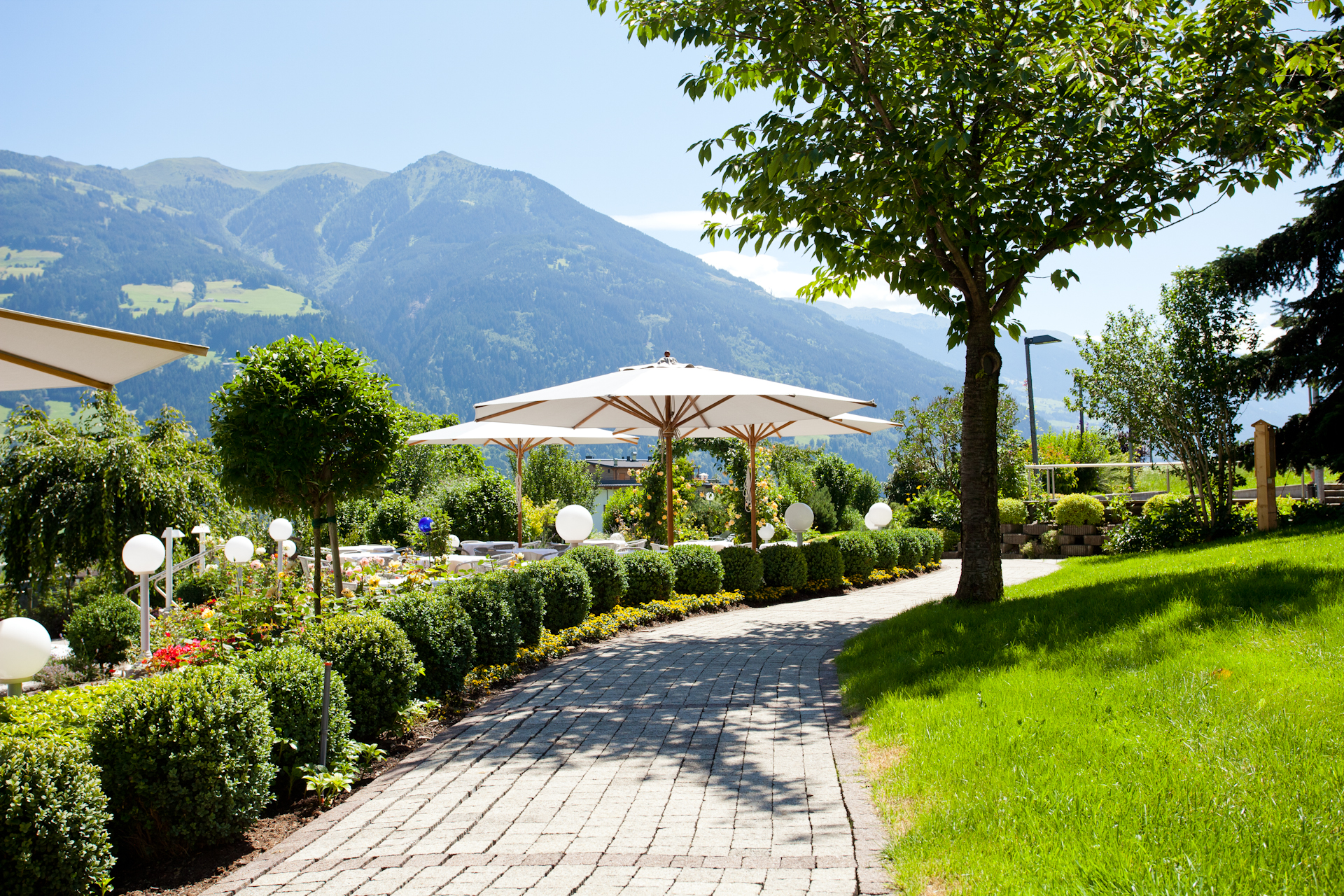 Die reine Natur im Crystal Garten: Als Herzstück des Hauses ist er auch zum Namensgeber geworden. Mit seinen 3.200 m2 geht der Crystal Garten fließend über in eine große Natur wiese und vermittelt das Gefühl von grenzenloser Natur. Kräutergarten, Beeren- und Obstgarten, Rosengarten, eine 250 Jahre alte Berghütte, die Crystal Blockhütte, das grüne Reich bietet alles, was man sich wünscht.