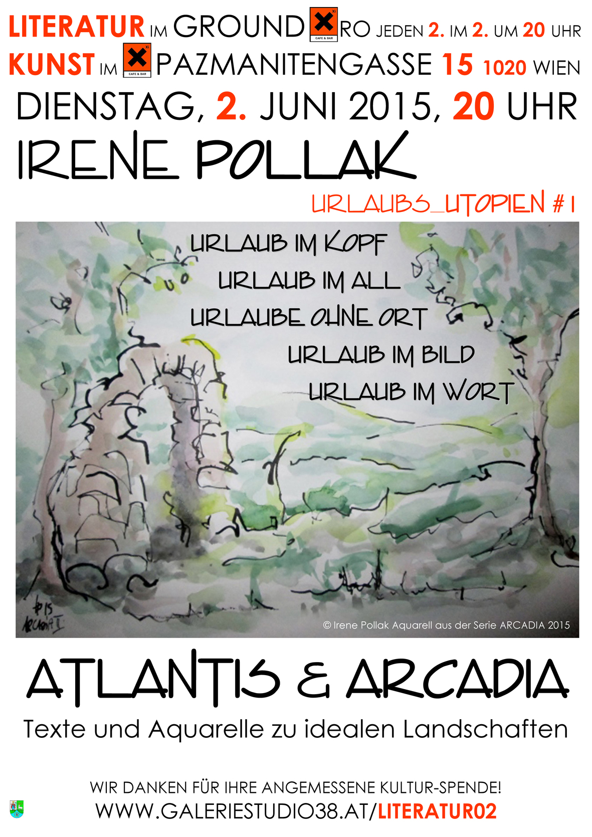 Am 2. Juni liest Irene Pollak im Ground Xiro neue Texte zu idealen Landschaften undpräsentiert als visuelle Erweiterung zu ihren literarischen Urlaubsutopien eine Serie von Landschafts-Aquarellen.