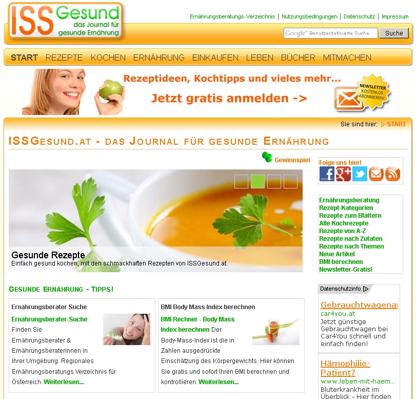 Bereits seit 2007 bietet das Portal www.issgesund.at alles Wissenswerte rund um die gesunde Ernährung sowie zahlreiche Rezepte und Kochtipps. Im Jahr 2012 haben rund 2.407.000 Besucher das beliebte Online-Magazin besucht; dies bedeutet einen rund 23 %-igen Zuwachs der Visits gegenüber dem Vorjahr. Die aktuellen Leistungs- und Zielgruppendaten von www.issgesund.at werden bei der ÖWA-Basic und ÖWA-Plus ausgewiesen.