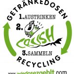 * CRUSHen = die leere Getränkedose mit dem richtigen Schuhwerk (!!) flach treten (keinesfalls mit Flip-Flops oder gar barfuß!!!)