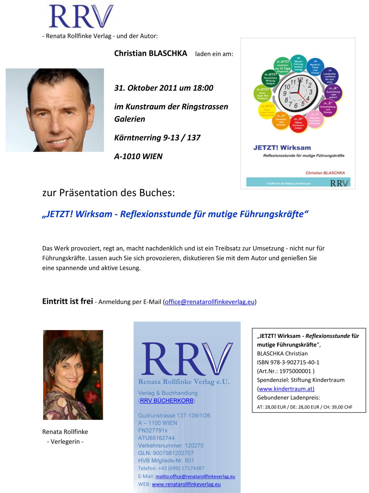 Eintritt ist frei – Anmeldung per E-Mail office@renatarollfinkeverlag.eu