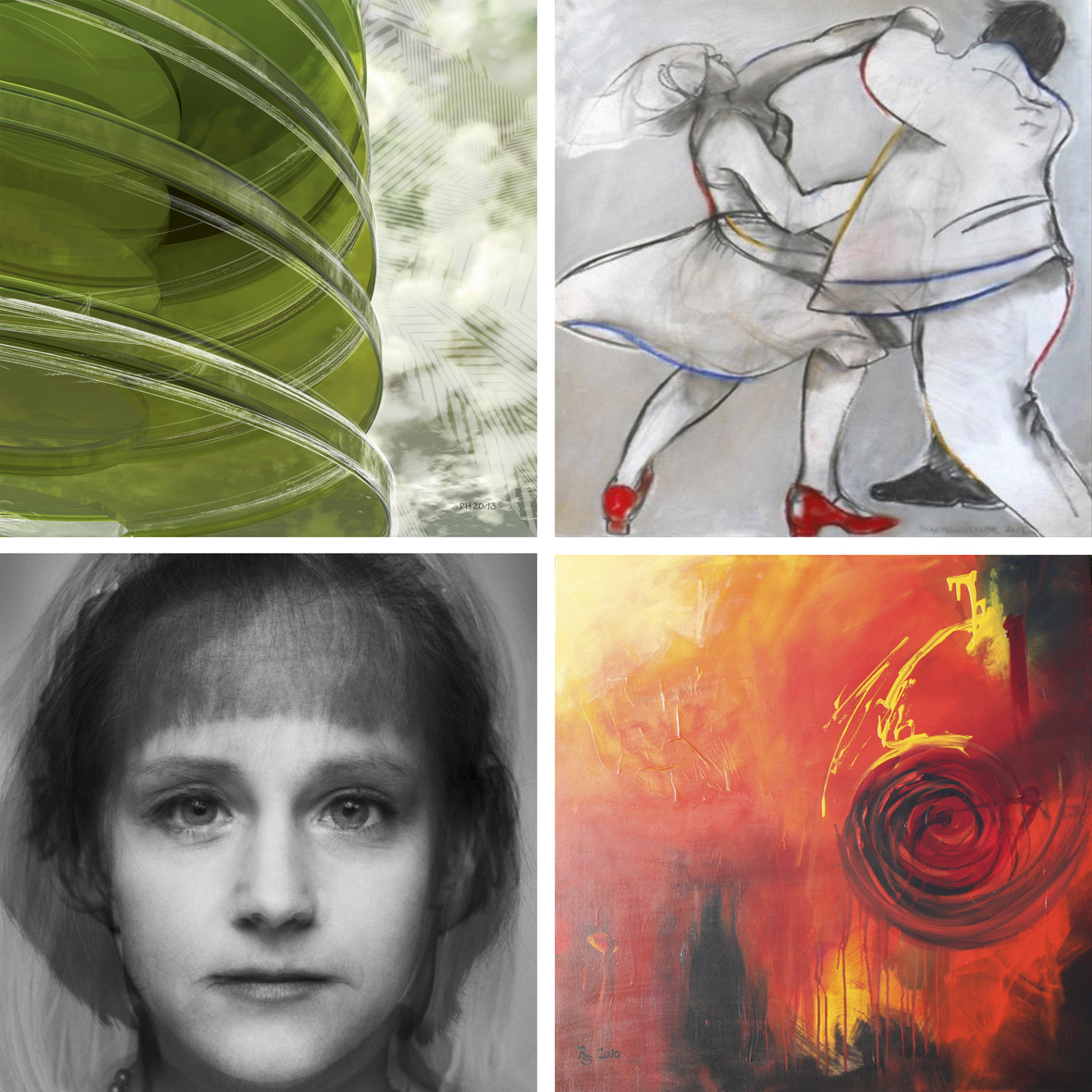 In unterschiedlichen Ansätzen – digitale Kunst, Mixed Media, Fotografie und Malerei – ist das Bindeglied der vier Positionen Experimentieren mit Farbe,Form und Ästhetik, eine „Einheit der Emotionen“ sowie eine stetige Auseinandersetzung mit Lebensräumen und Gesellschaft.