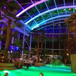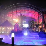 Neben der Architektur sind auch die Wasserflächen, Palmen sowie Outdoorflächen im Lichtkonzept integriert. So können unterschiedliche Stimmungsbilder durch die Beleuchtung der einzelnen Elemente erzeugt werden. Beispielsweise erstrahlt das Wasser in Türkis, die Dachkonstruktion – also der Himmel – in Violett und die Palmen in Gelb. Im 10-Minuten-Intervall wechseln die Farben und ein neues Stimmungsbild inszeniert die Cabrio-Therme.