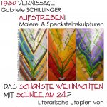 Daria HAGEMEISTER und IrenePOLLAK lesen am 20. Dezember – der letzten Veranstaltung von kunst-projekte indiesem Jahr. Ihre Texte setzen sich noch einmal mit dem Jahresthema 2015 UTOPIEN auseinander. Gabriele SCHILLINGER greift in ihren Acrylbildern der Ausstellung „Aufstreben!“, die vor der Lesung eröffnet wird, ebenfalls verschiedene Aspekte des Utopischen auf.