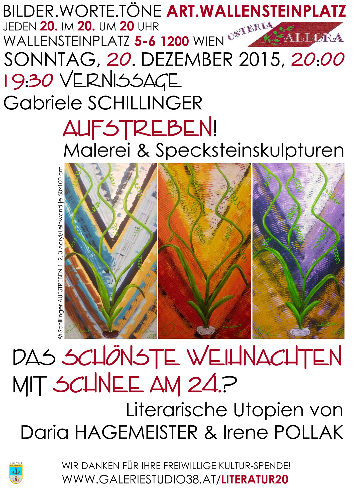Sonntag, 20. Dezember 2015, ab 19.30 Uhr Osteria Allora ART. WALLENSTEINPLATZ Wallensteinplatz 5-6, 1200 Wien