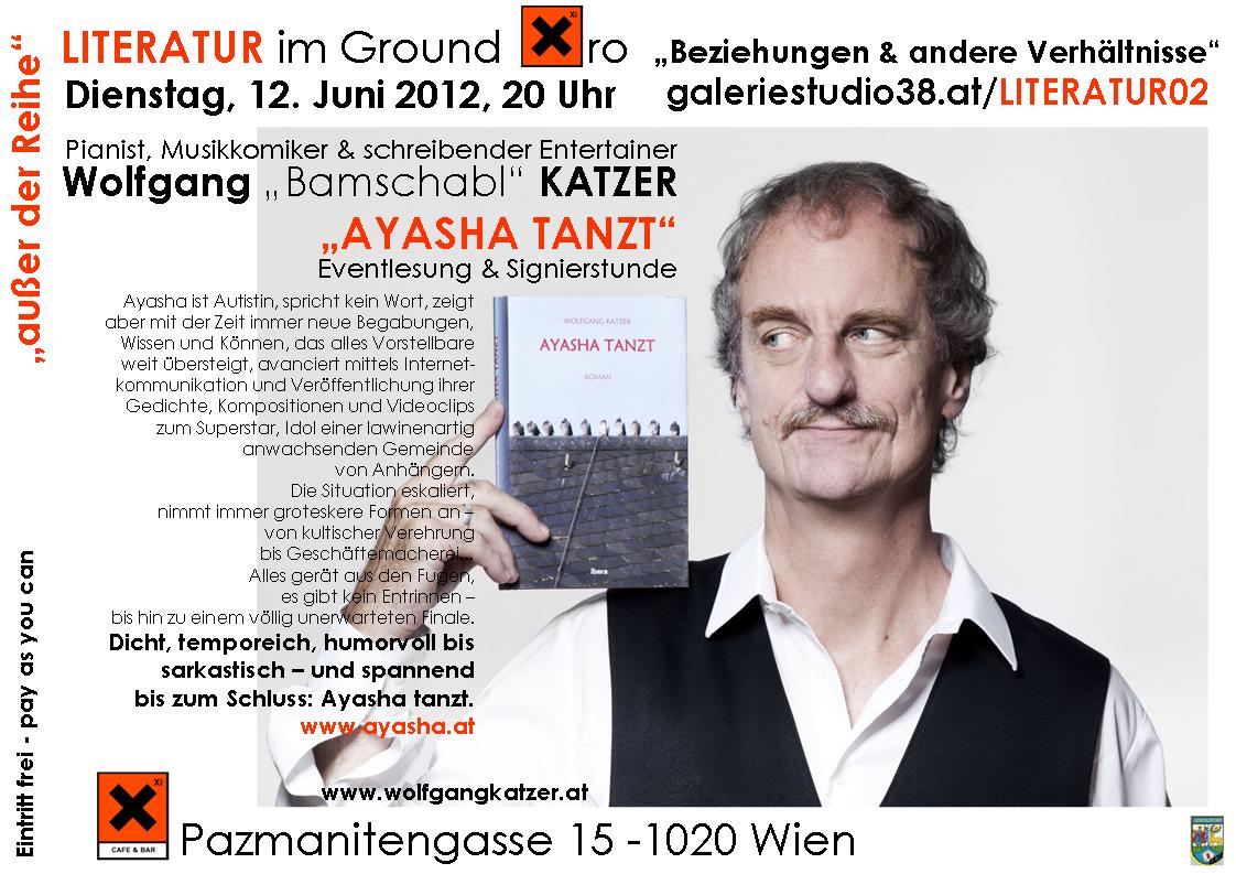Wolfgang Katzer ist vielen bekannt als „Bamschabl“ des beliebten Musikkomikerduos „Muckenstruntz & Bamschabl“. Weniger bekannt ist, dass er gleichzeitig mit dem Schreiben sämtlicher Programme auch Satiren, Glossen und Gedichte in diversen Magazinen und Zeitschriften veröffentlicht und auch bereits einige Romane verfasst hat. Aus seinem jüngsten Buch, „Ayasha tanzt“ wird Wolfgang Katzer am 12. Juni im Ground Xiro lesen, begleitet von seinem Sohn Valentin auf der Gitarre.