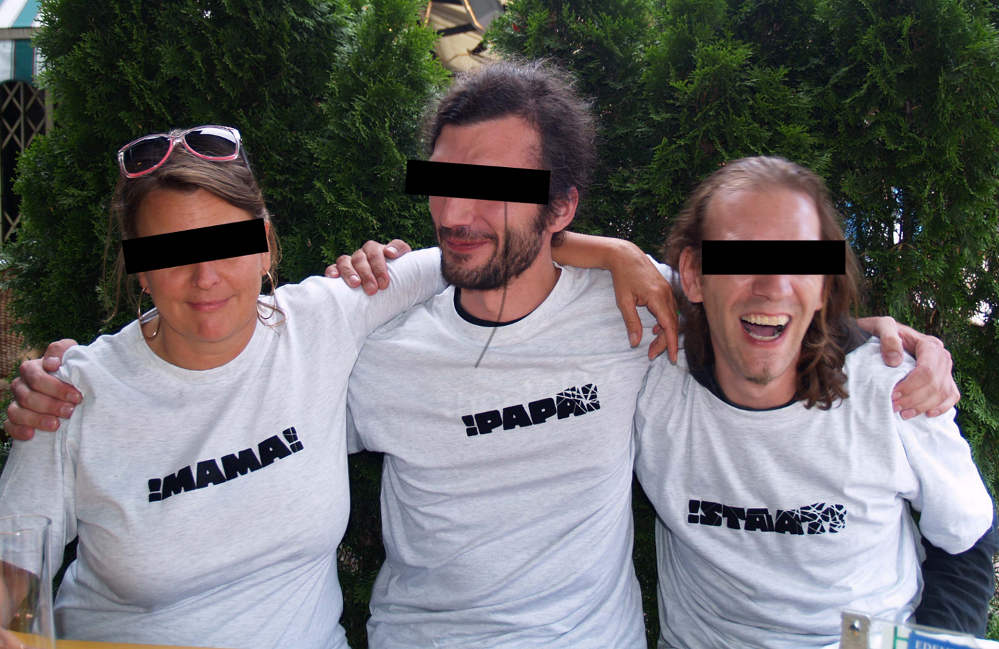 Im Anschluss an die Videoperformance wird ein DJ versuchen, die akustisch-atmosphärische Ordnung in der Rinderhalle wiederherzustellen, bevor dann Milan Markovich, Kristina Foggensteiner, Florian Steinberger, Michael Schüller und Freunde von der „Plattform für audiovisuelle Experimente“ die Location rhythmisch wieder ordentlich aufwirbeln werden, im Rahmen ihrer Live-Session, die bis etwa ein Uhr früh dauern wird. Die Veranstaltung wird vom Performance-Künstler Otmar Wagner moderiert und bietet zudem die Möglichkeit, eines der begehrten Mama! Papa! Staat!-T-Shirts (siehe Bild) käuflich zu erstehen – „Restbestände sind noch vorhanden“, verspricht Foggensteiner.